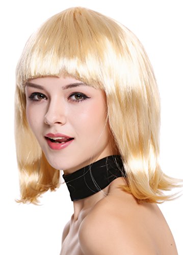 WIG ME UP ® – 0073-3-P02 Peluca mujer Carnaval Halloween Disco Party corto Longbob Bob flequillo rubia [OFERTAS]