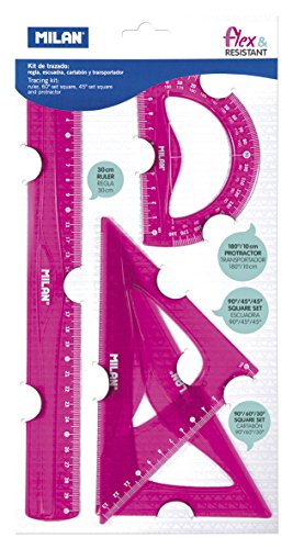 Set de Dibujo Técnico Flexible Milan 4 Piezas – 1 regla de 30 cm con borde biselado – 1 escuadra de 45ordm; de 13 cm – 1 cartabón de 60ordm; de 17 cm – 1 transportador de 180ordm; de 10 cm Fabricado en material flexible de gran resistencia Producto Milan Dimensiones:18.50 x 34.40 x 0.30Caracterís…Leer más