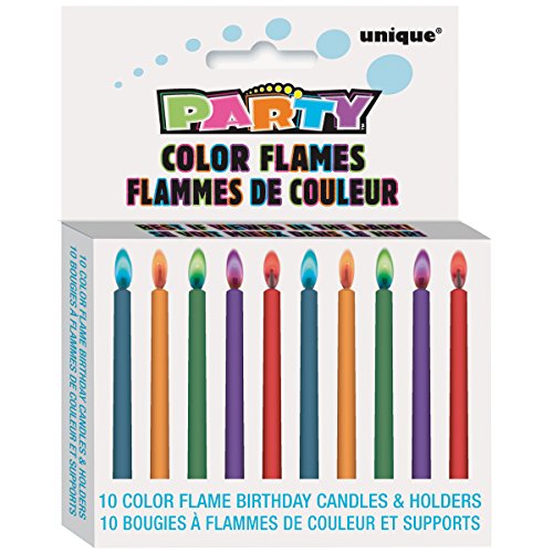 Unique Industries-Birthday Candles & Holders: Color Flame. A fun addition to any birthday party! This package contains ten 2 inch birthday candles and ten holders. WARNING: To Prevent Fire- keep burning candle within sight. Not recommended for children under 3 years. Imported.Características