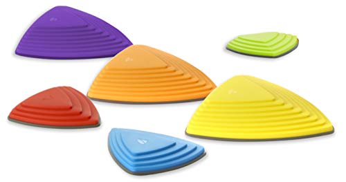 Great for improving coordination and balance;Each side of the stones vary in steepness and difficulty;May be stacked for easy storage;Rubber rim prevents slipping;Contians 3 large stones and 3 small stones