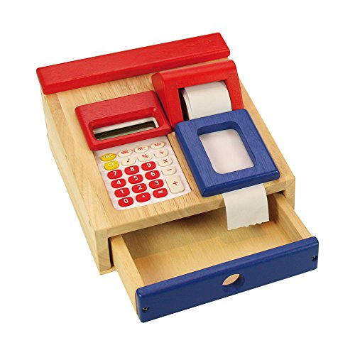El complemento perfecto para cualquier Juego de madera Tienda, esta madera de la caja registradora viene completo con un sistema incorporado en la calculadora e incluso tiene un rollo de tickets. Ademós, hay un cajón para mantener tomas seguro! Ideal para sesiones de juegos de rol interactivos y para ayudar a desarrollar las habilidades numóricas. Estimula el juego papel creativo e imaginativo. Cumple con las normas europeas de seguridad vigentes. Edad 3+ aóos. Ancho: 185 mm, Profundidad: 185 mm.